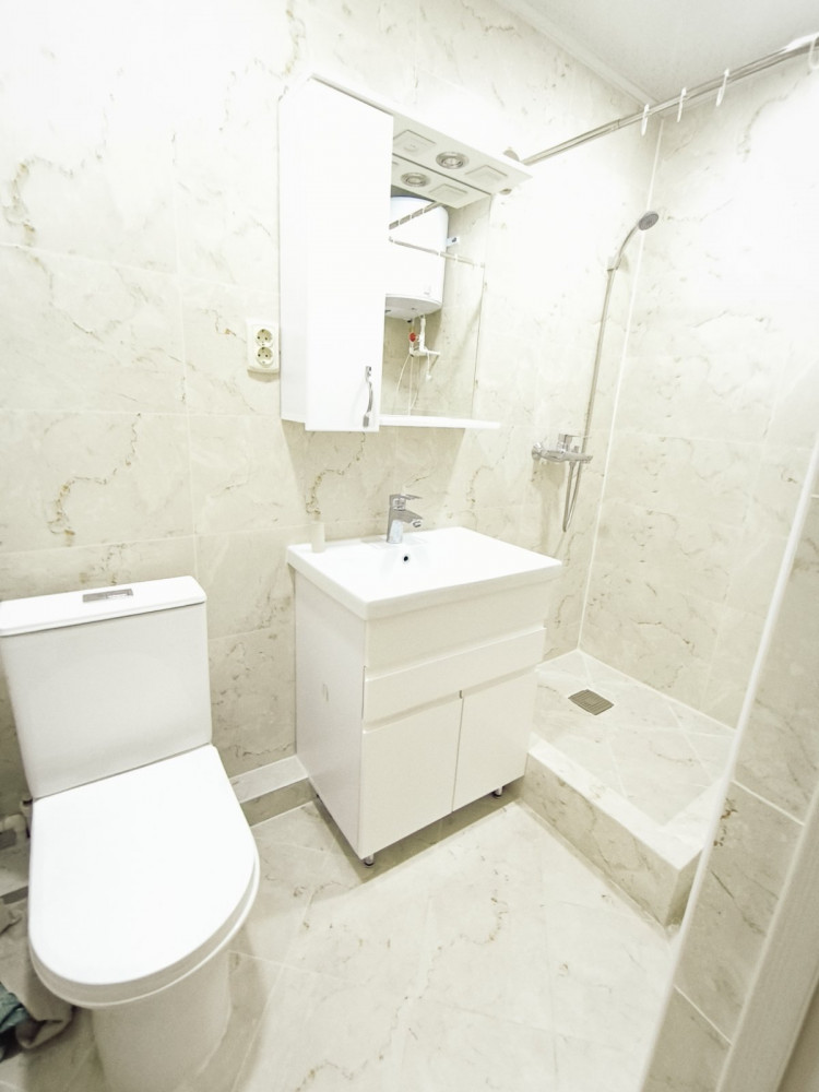 после ремонта, стеклопакеты, натяжные потолки, ламинат, совмещенный санузел, установлен бойлер